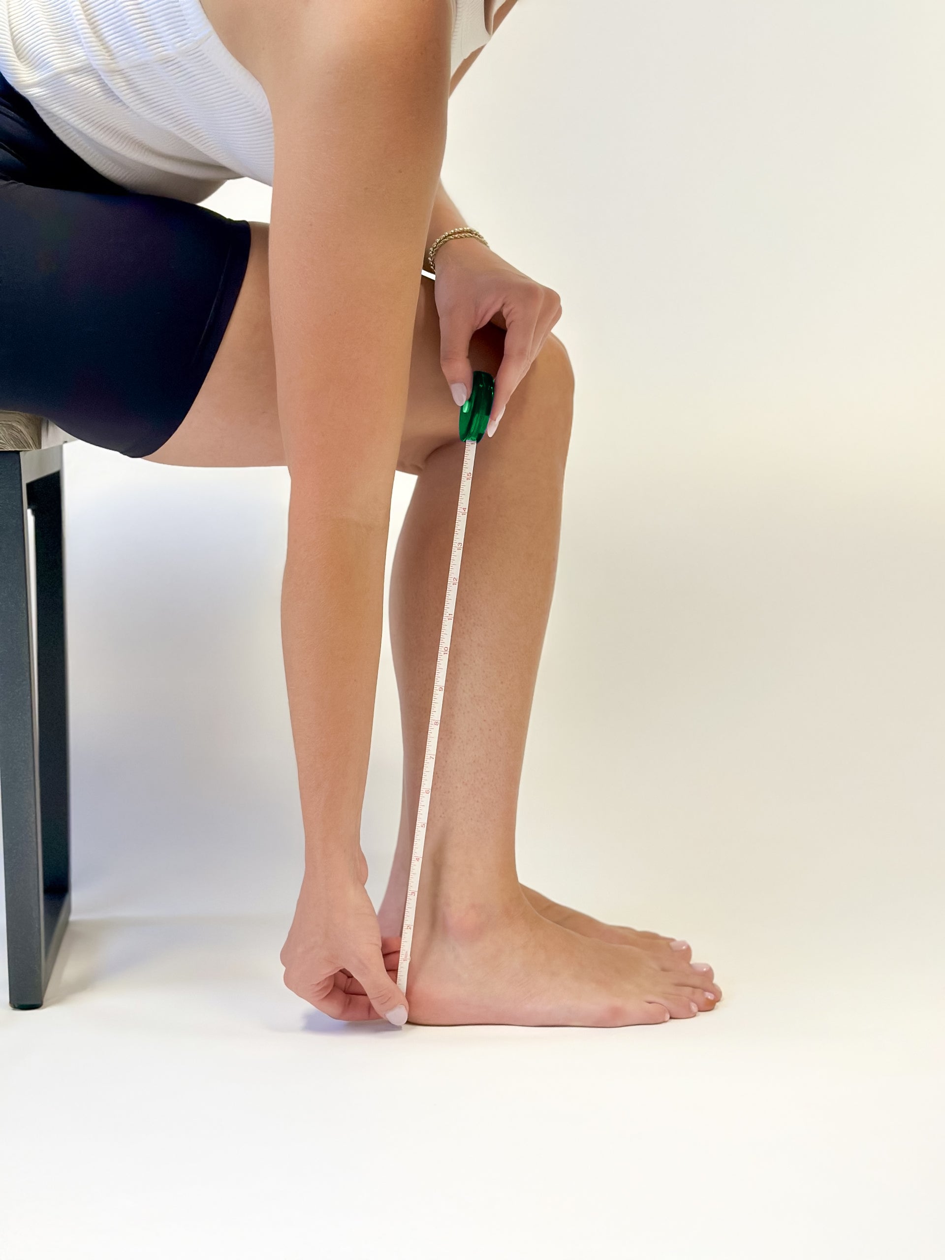 Starting at the base of you heel, measure the length from the floor to the bend in the back of your knee.